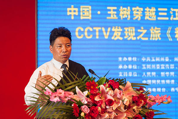 玉树旅游局局长阿夏永红在发布会上介绍玉树旅游