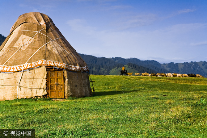 那拉提草原是世界四大草原之一的亚高山草甸植物区,自古以来就是著名的牧场。优美的草原风光与当地哈萨克民俗风情结合在一起,成为新疆著名的旅游观光度假区。(图片来源:视觉中国)